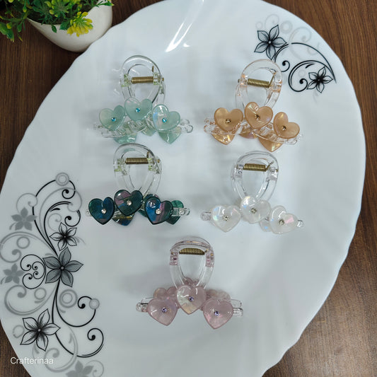 Transparent Heart Hair Claw Clips – Glossy Duo Hearts with Crystal Studs