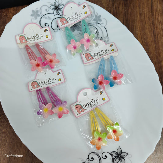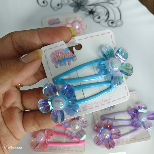 Colorful Flower Hair Clips – Set of 2 | Kids Snap Clips for Girls