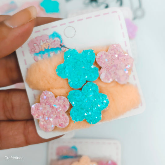 Fur glittery tiktak flower-shaped hair clips|party wear use