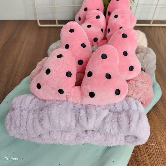 “Cute Polka Bow Hairband – Soft Plush Makeup & Skincare Headband”