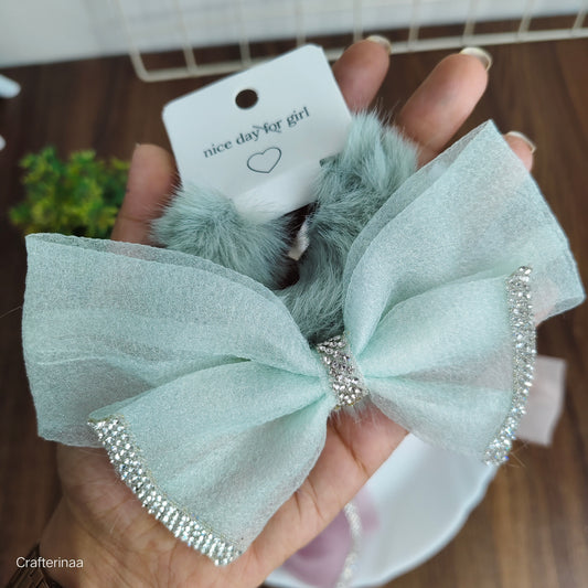 Luxury Fur Bow Hair Clips with Rhinestones|Furry Glitter Bow Hair Clip|