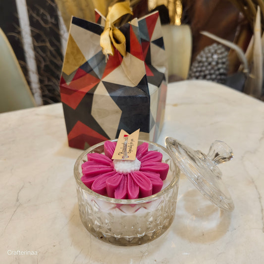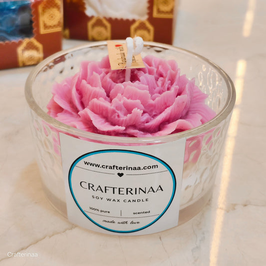 Handmade Peony Flower with vanilla sented Soy Wax Candle in Glass Jar – Decorative & Gift Candle