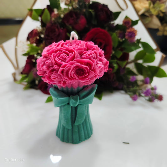 Luxury Flower Bouquet Candle – Pink Roses with Bow Design|Aesthetic Gift for Special Occasions premium Gifting