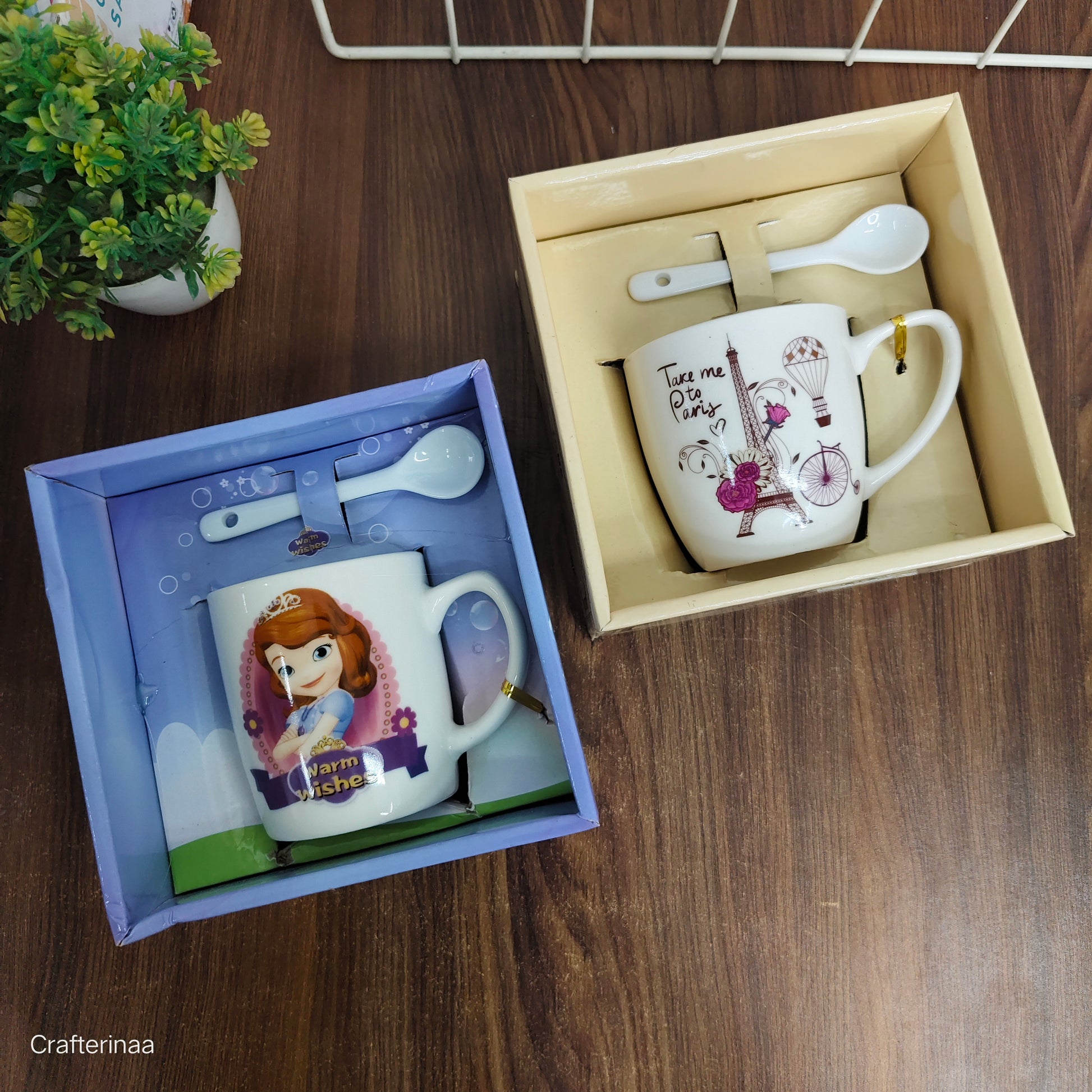 Ceramic Mug with Spoon Gift Set – Cute Cartoon & Coffee Design Cups
