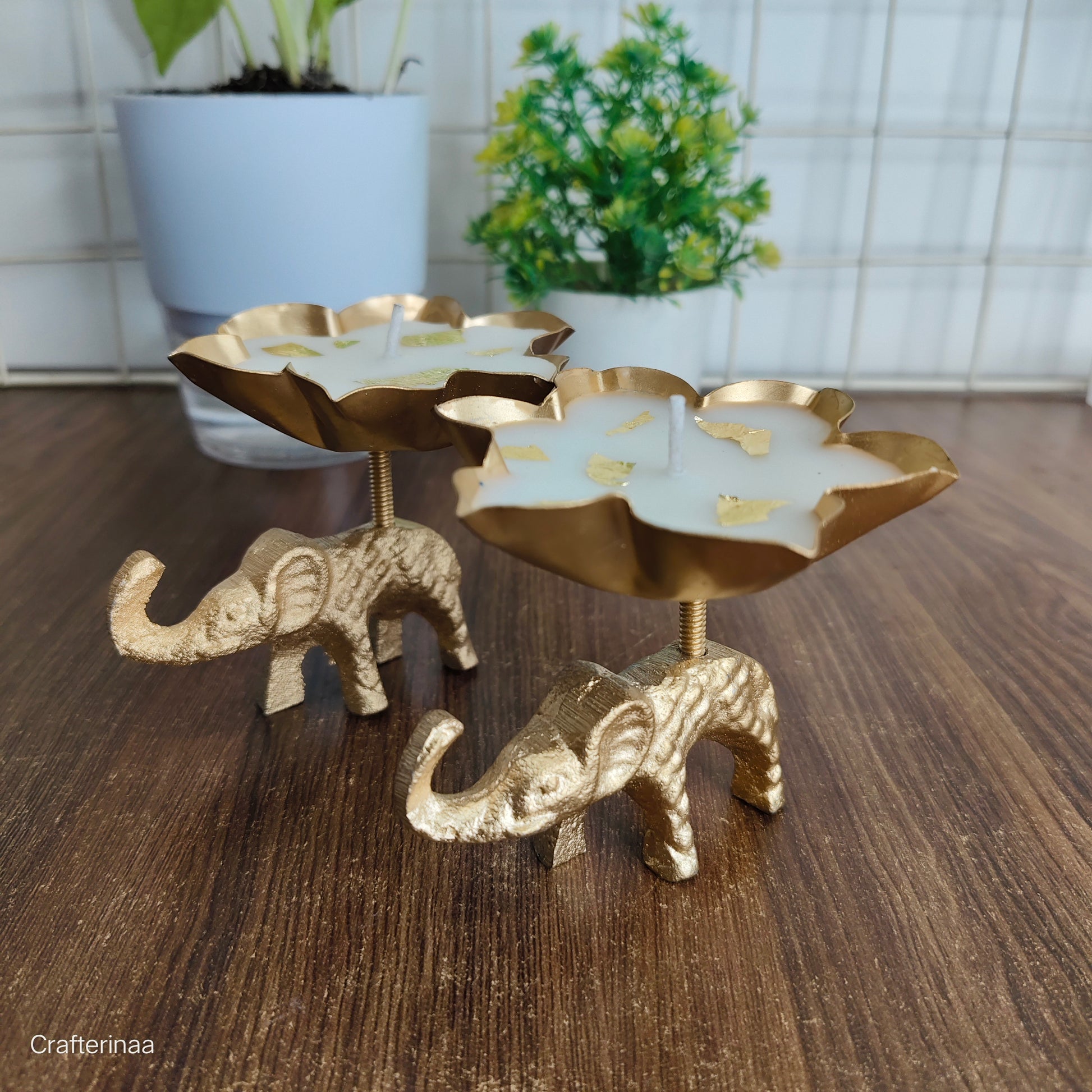 Elephant urli with pure soy wax candle and gold foil decor SET of 2 | home decor candles premium Candles