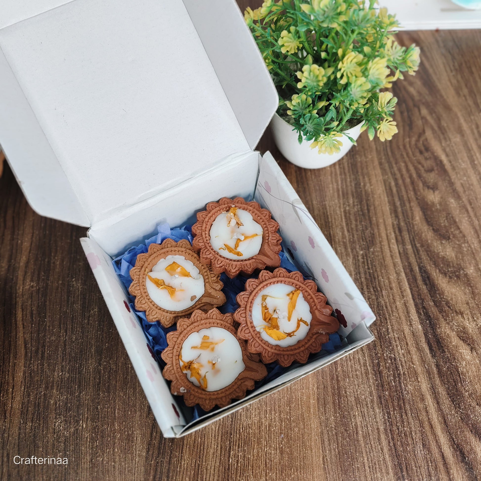 Handmade Terracotta Diya Candles with Natural Wax & Dried Flowers – Eco-Friendly Gift Set of 4 diyas