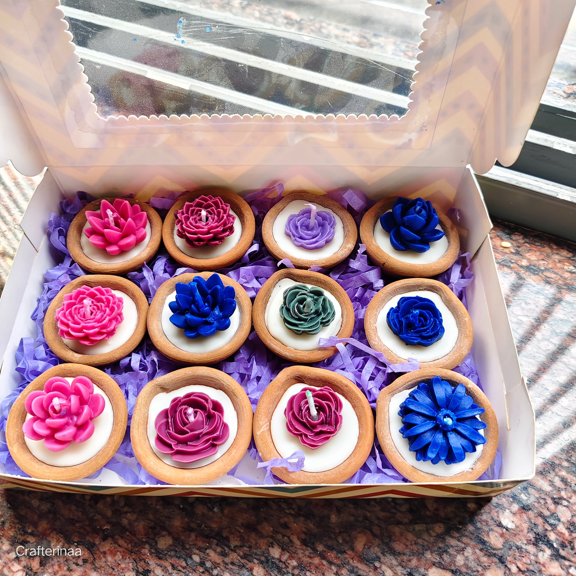 Luxury Floral Scented Tealight Candles| terracotta candle Diyas – Set of 12 in Gift Box