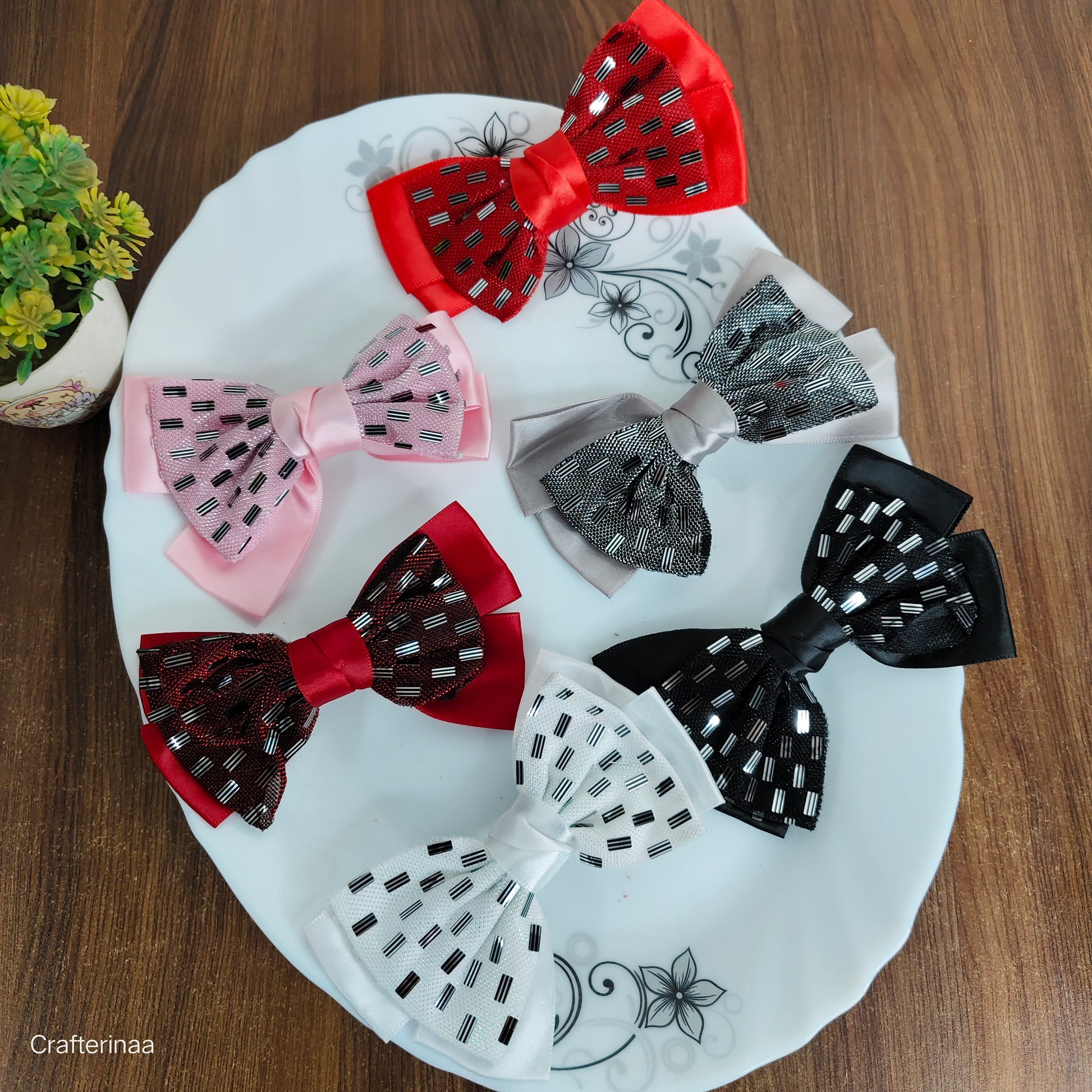 "Shiny Sequin Satin Bow Hair Clips – Stylish Hair Accessories for Festive & Daily Wear"