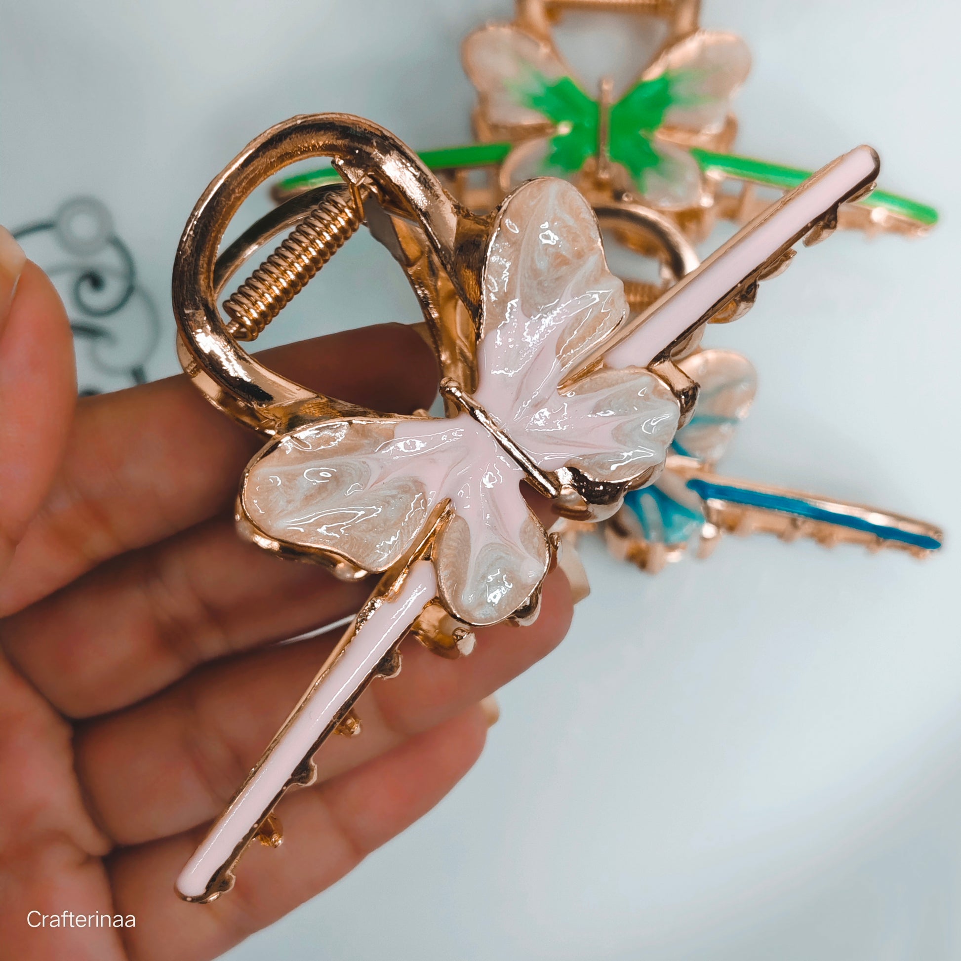 Premium Butterfly Hair Clutchers – Gold Metal with Color Enamel