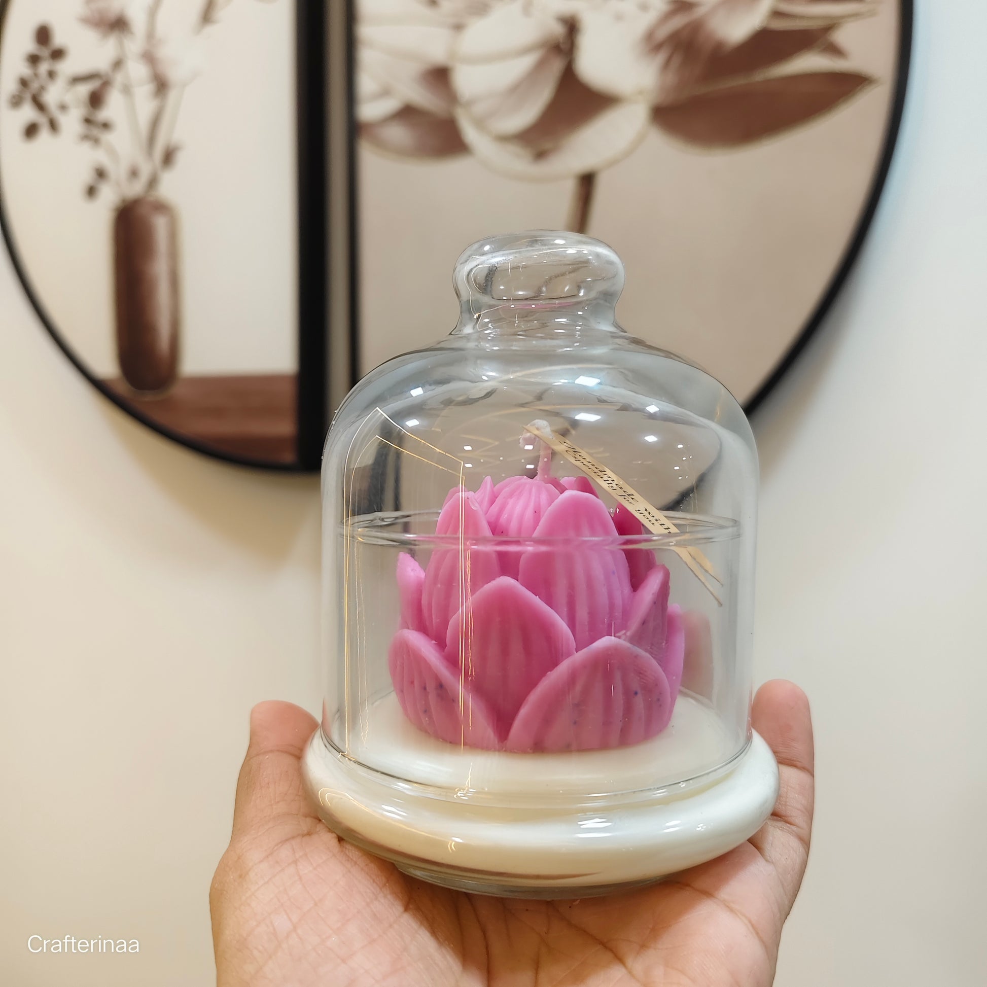 “Handmade Lotus Candle in Glass Cloche with the vanilla scented – Luxury Home Decoration”